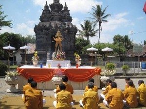 Suasana Ritual Agama Budha di Candi Pawon